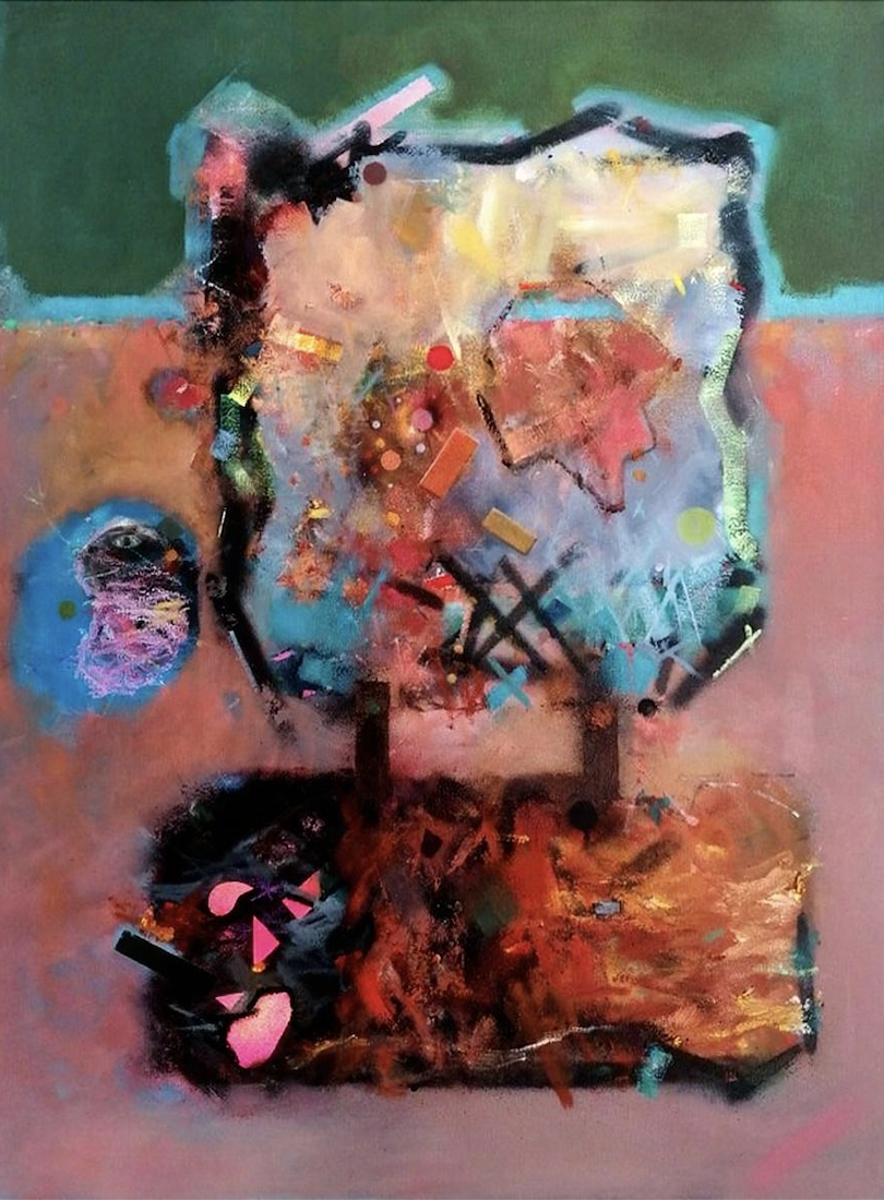 The expressionistic works reveal a synthesis of classical oil techniques and modern abstraction, combining meticulous Old Master layering with luminous color and tactile depth.