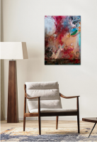 A modern red composition blending Old Master technique with contemporary abstraction. Radiant colour and layered depth keep the piece visually compelling — even when rotated — making it ideal for living rooms, workspaces, studies, or consulting rooms.